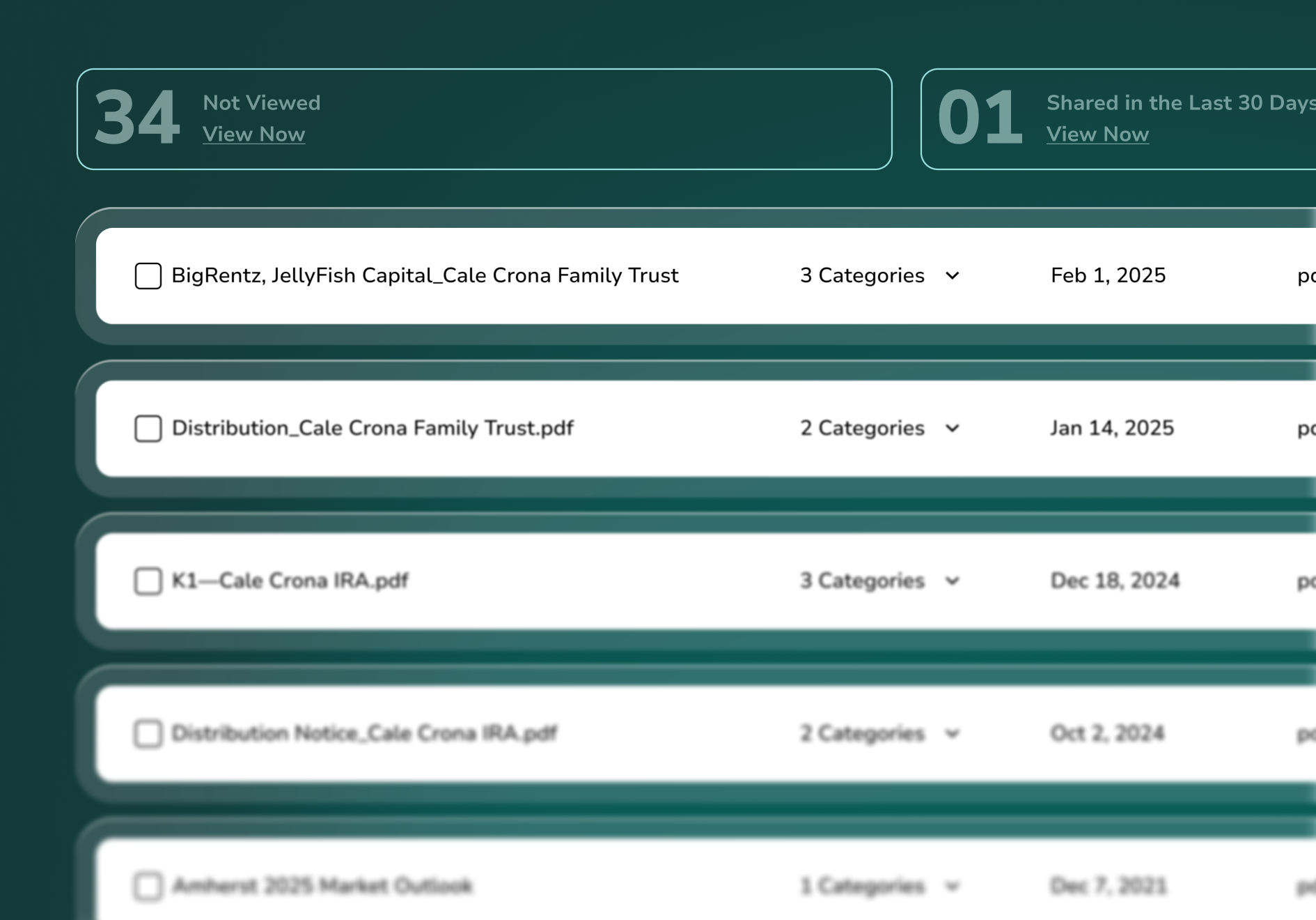 Manage complex diligence with ease. Altvia’s secure VDR centralizes documents, supports structured review workflows, and tracks engagement across internal teams, advisors, and counterparties. Real-time visibility into document activity helps deal teams move faster while maintaining control and auditability.